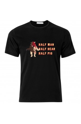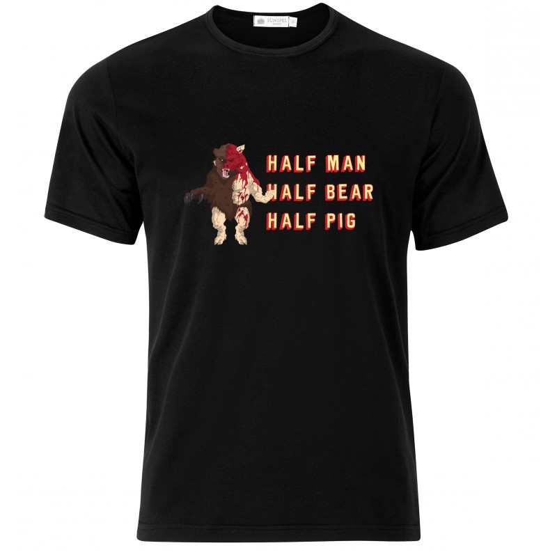 T-shirt à l'effigie de l'Homoursporc, moitié homme, moitié ours, moitié porc.